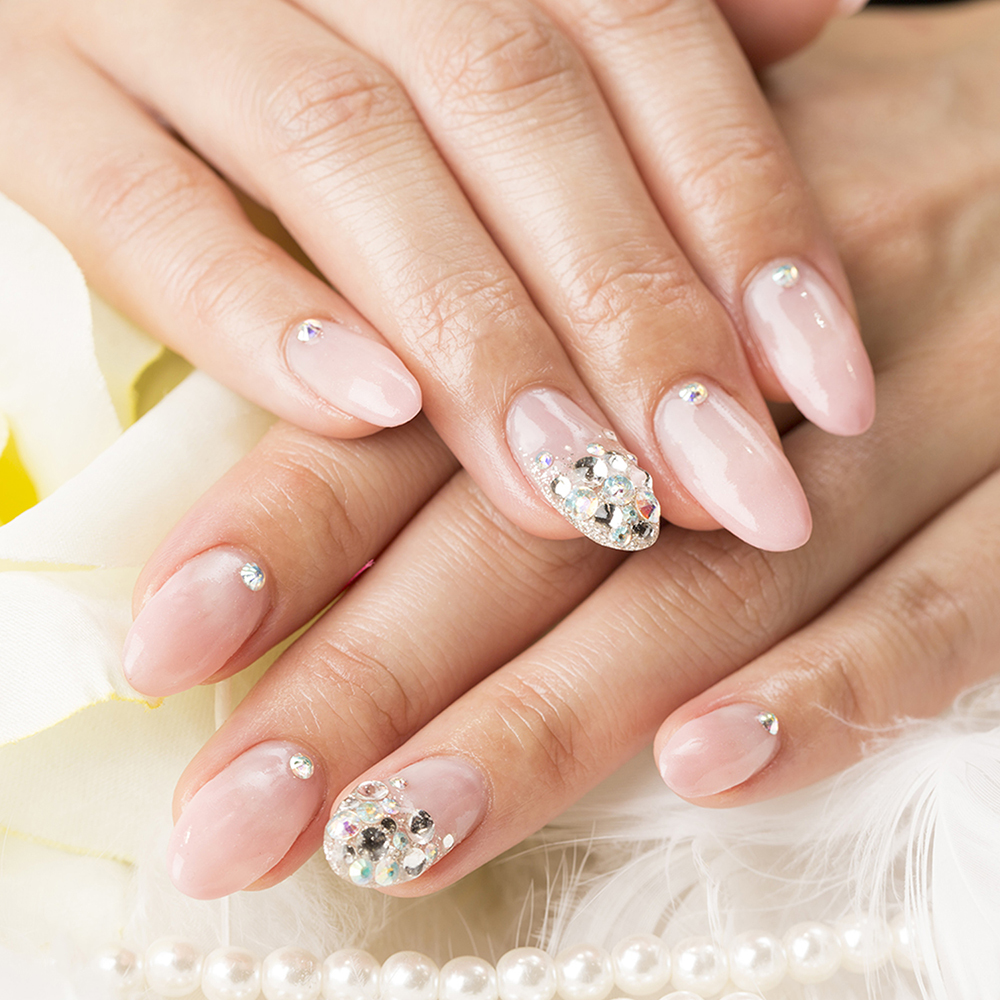 ベースのネイルに、ストーンをのせたり絵を描いたりラメをのせたり、様々な種類があります。クール、キュート、エレガント、ゴージャスなどあらゆる雰囲気に合わせていただけます。